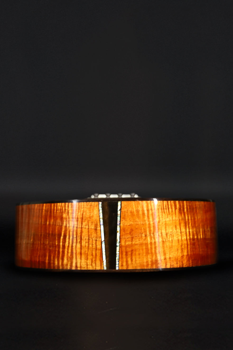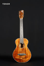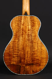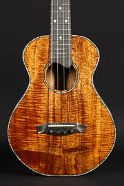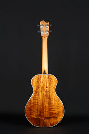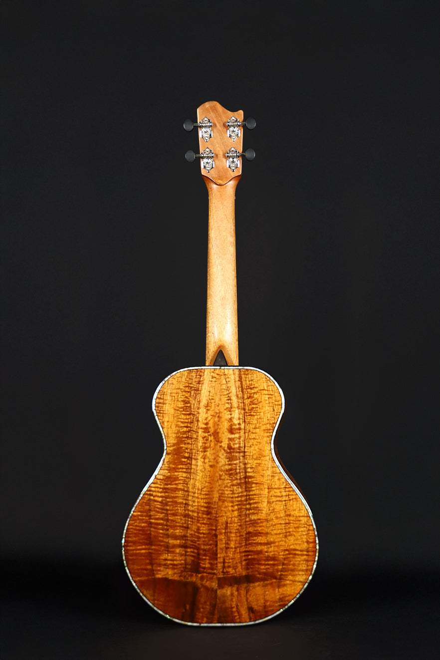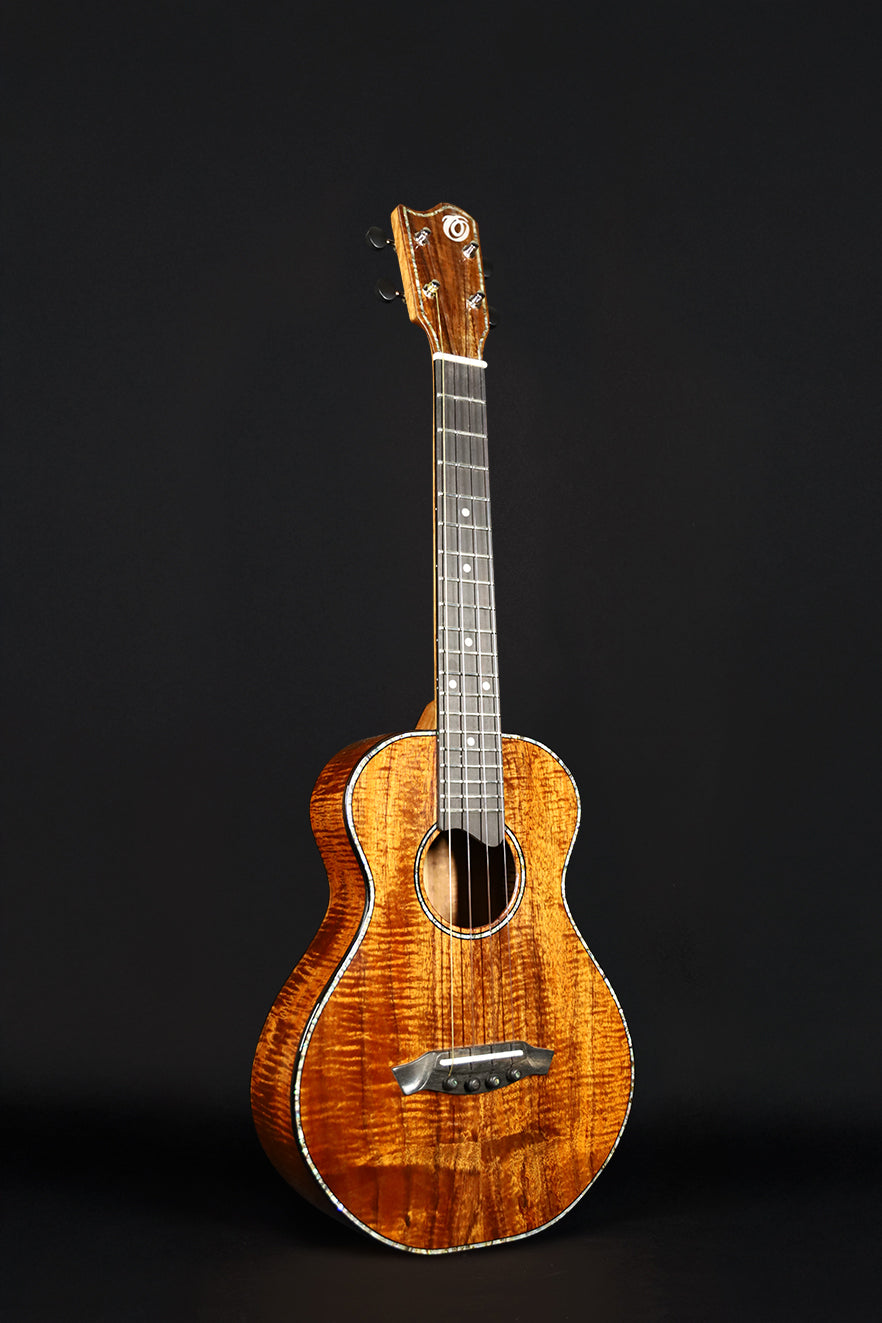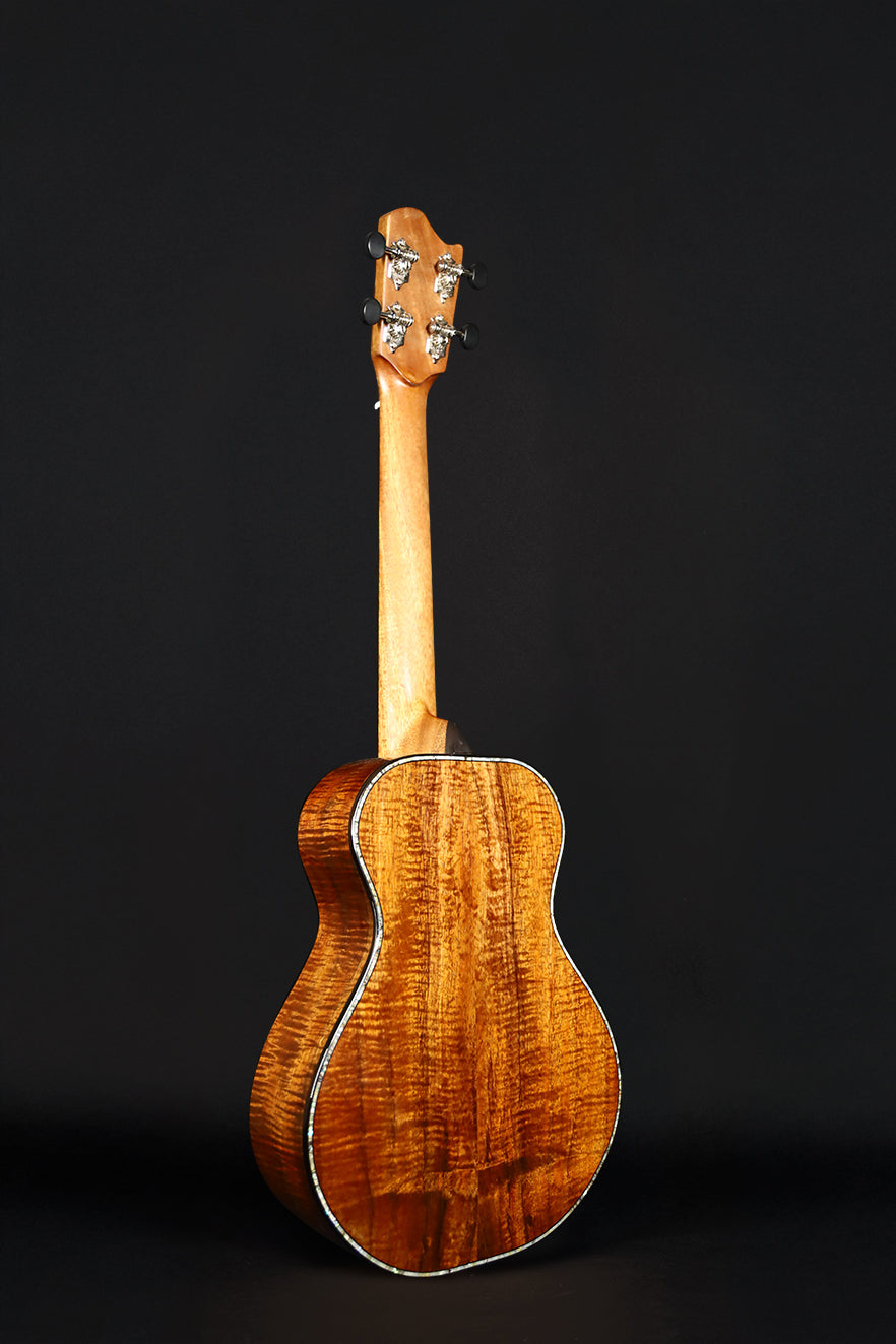Note: This is a pre-production tenor unit in an all-solid, gorgeous koa set from Hawaii.  Unit was built and completed just before production launch, and has some minor finish blemishes.