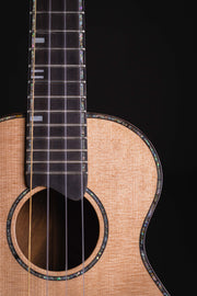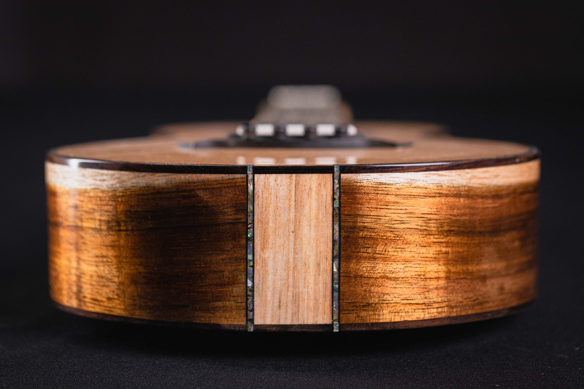 A soundboard made of Sitka spruce surrounded by classic koa, this piece is a beautiful balance between wood and art.