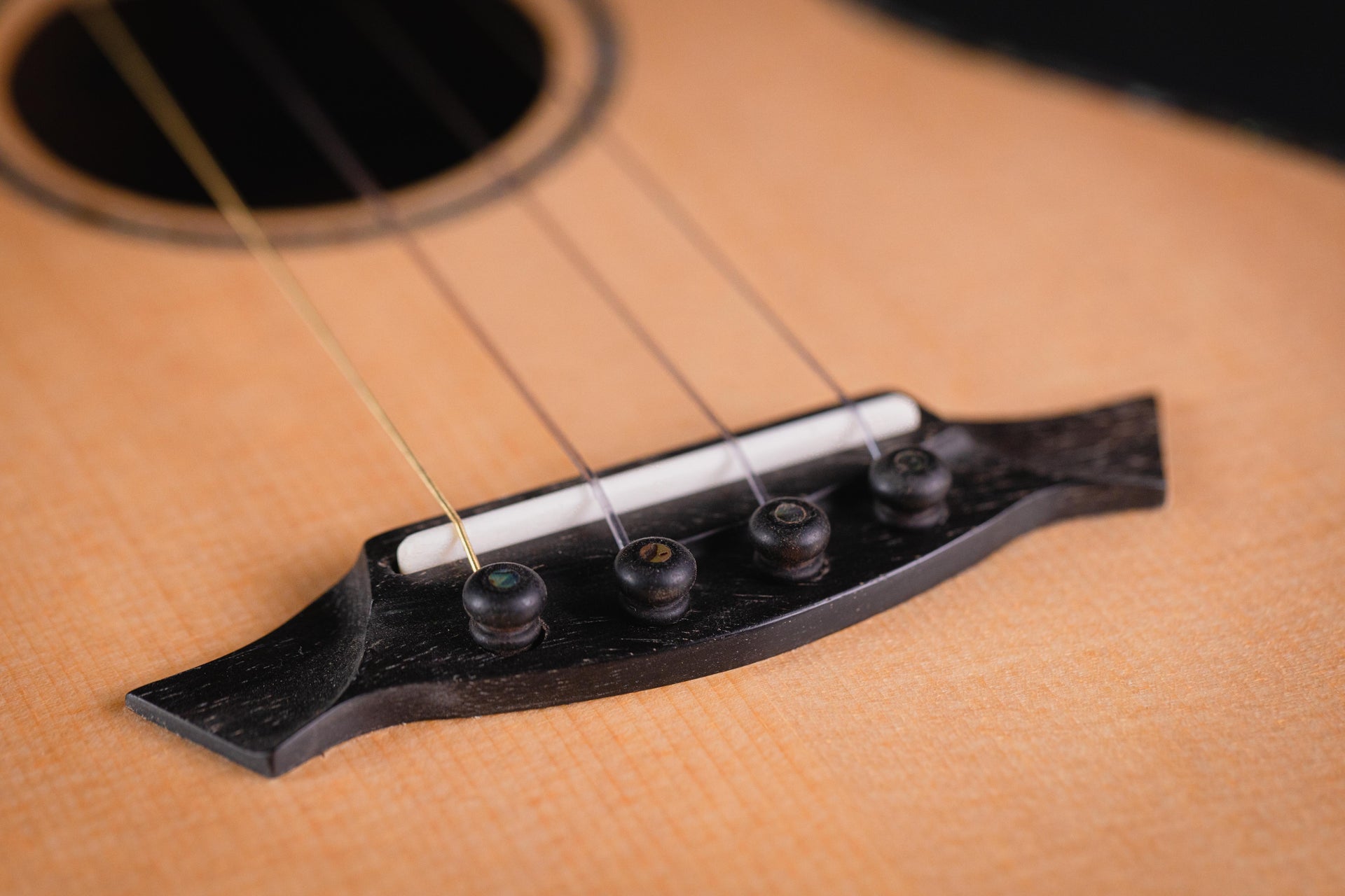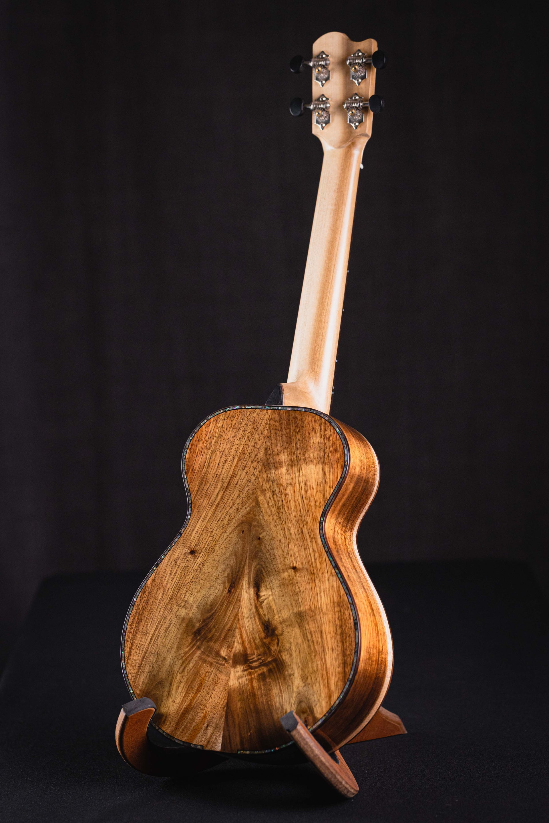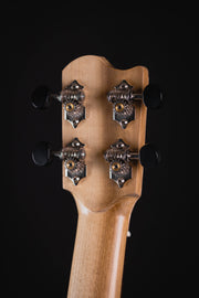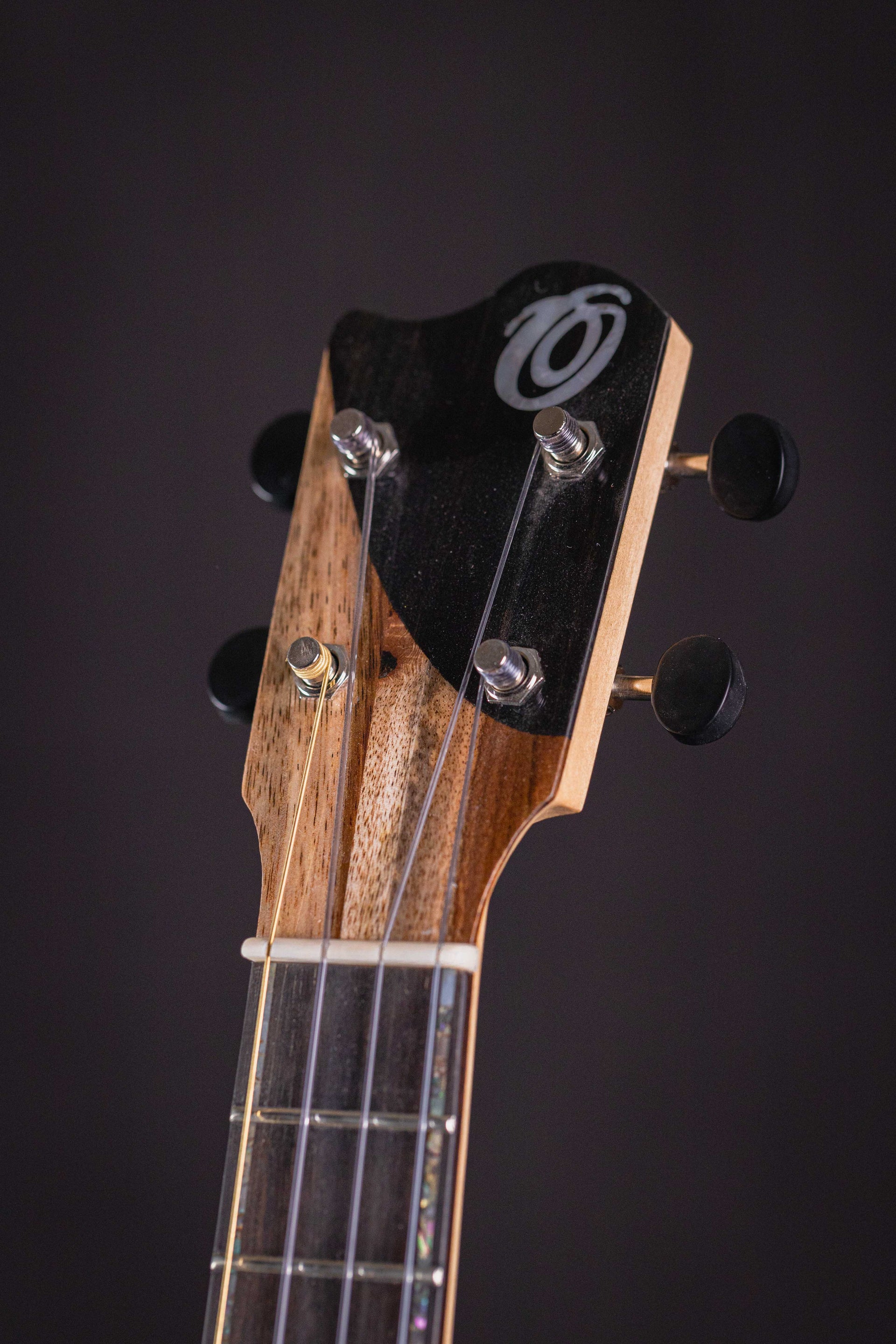 The headstock is pleasingly shaped with a koa veneer and Gotoh UK-700 style tuners -- ensure bringing your (!!what strings!!) strings into pitch is always a joy and never a chore.
