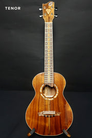 This OCS tenor ukulele features a custom-engraved Polynesian spearhead pattern.