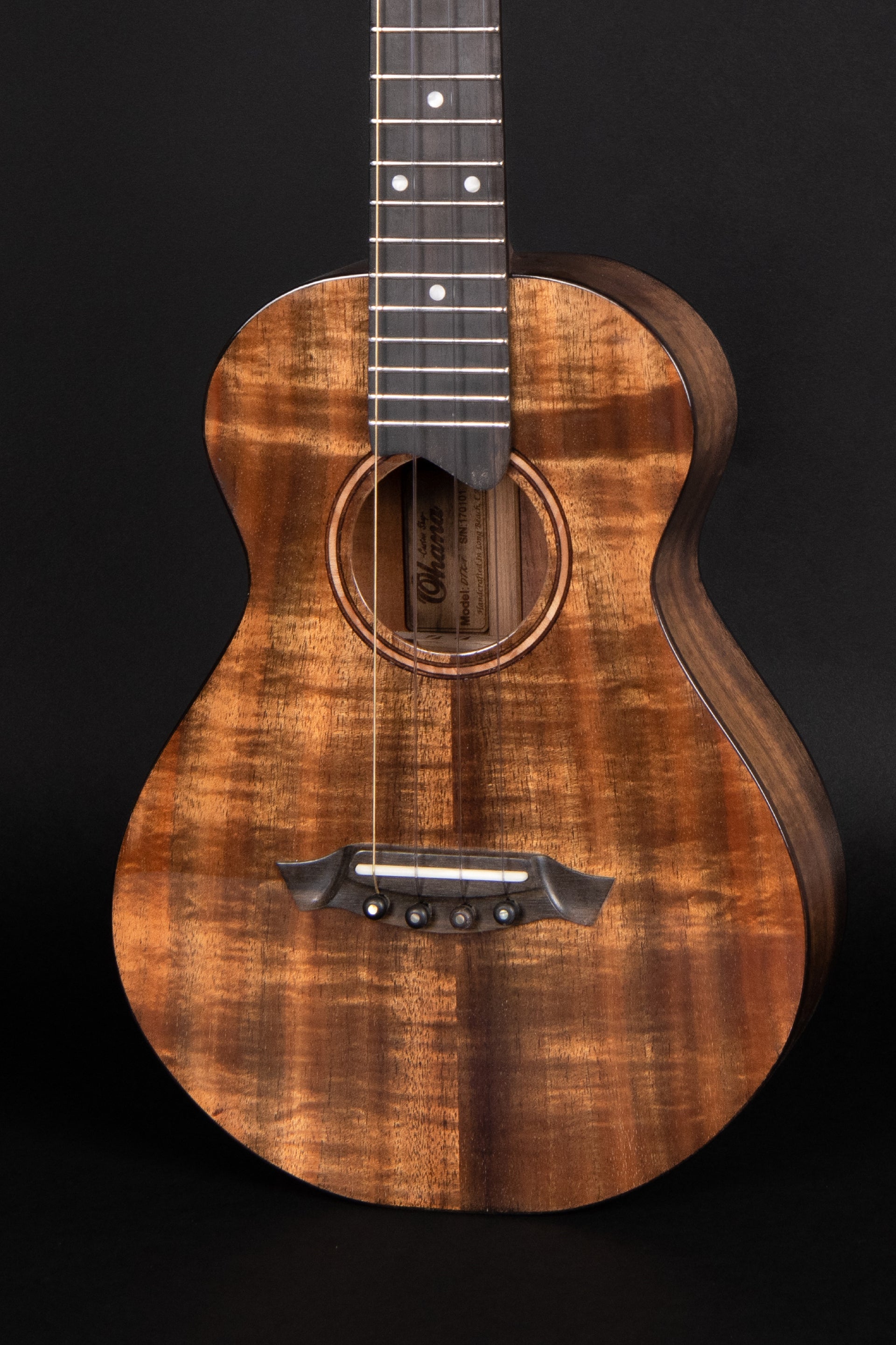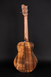 The DTK-1 custom tenor is made in all-solid Hawaiian Koa with rosewood binding a sleek maple rosette. The spalted maple and walnut rosette inlay completes the design while adding a touch of lucidity along with its high gloss finish.